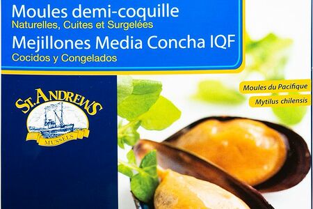 Мидии чилийские St. Andrews варёно-мороженые в половинках раковин доставка