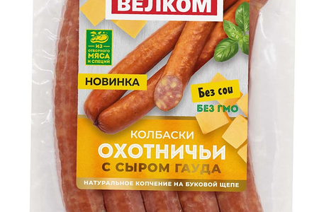 Колбаски Велком охотничьи с сыром полукопченые доставка
