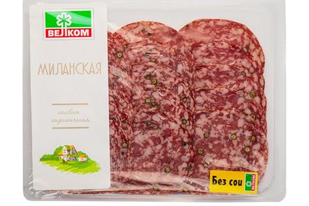 Колбаса сырокопчёная сухая Миланская Велком, нарезка доставка