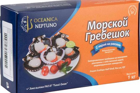 Морской гребешок с икрой на раковине ТМ Oceanica Neptuno (Океаника Нептуно) доставка
