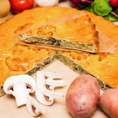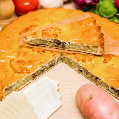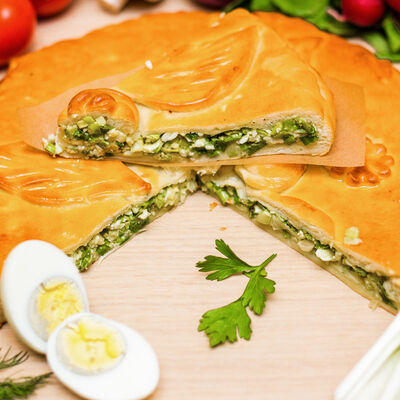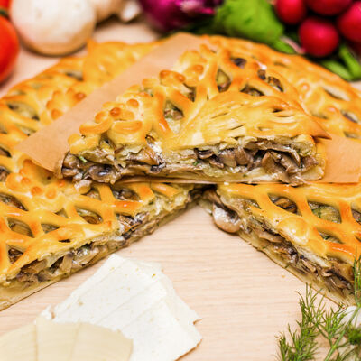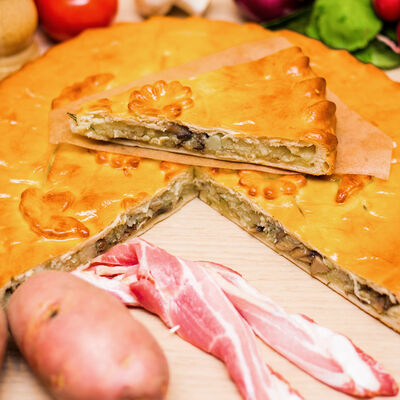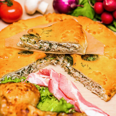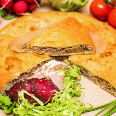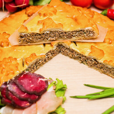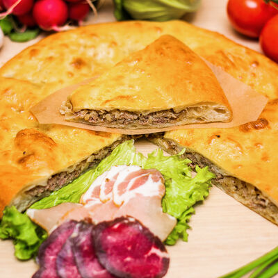 Дрожжевое тесто, говядина, свинина, лук репчатый