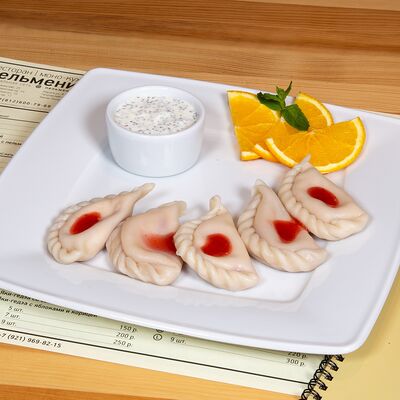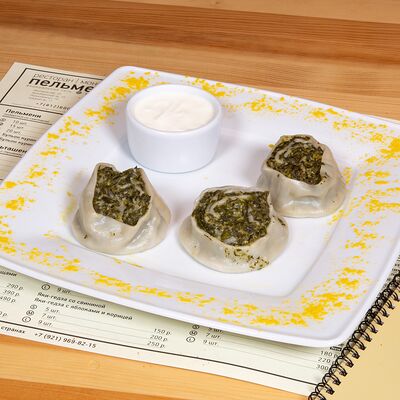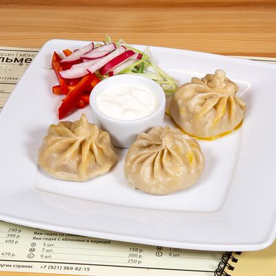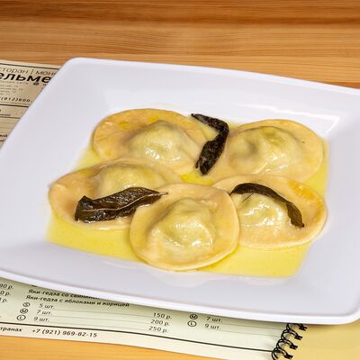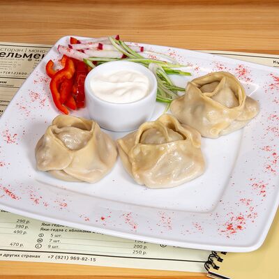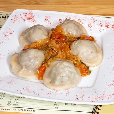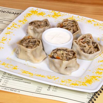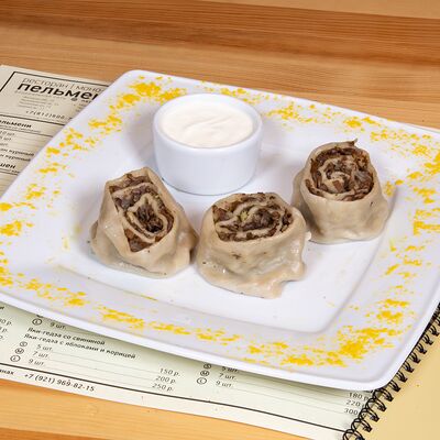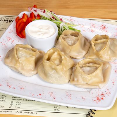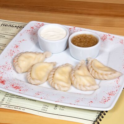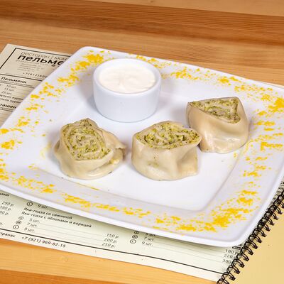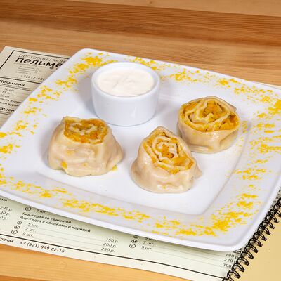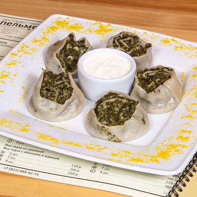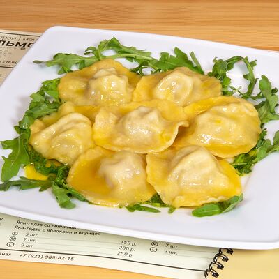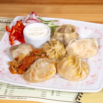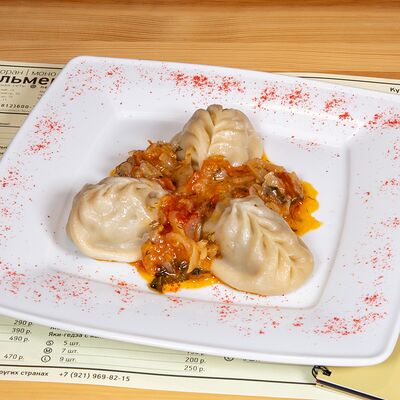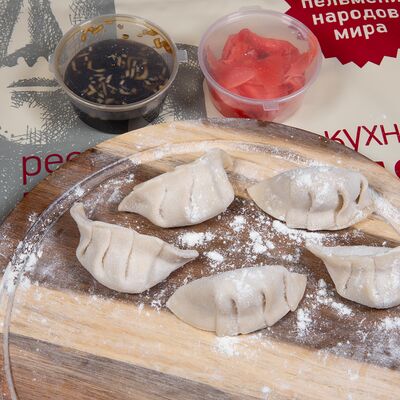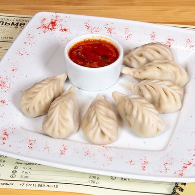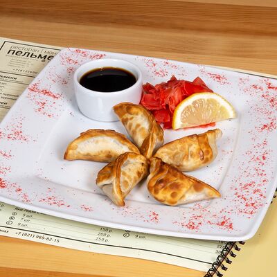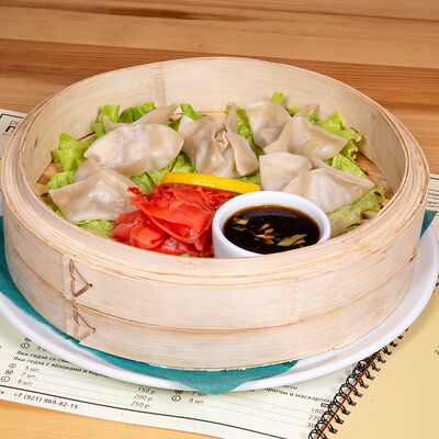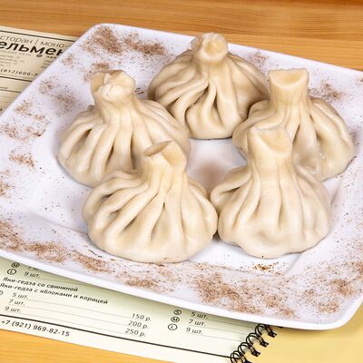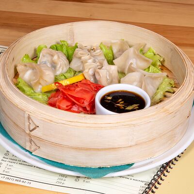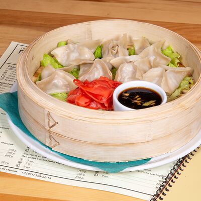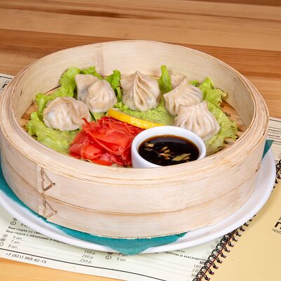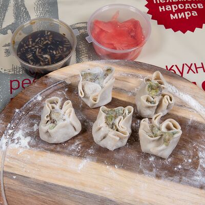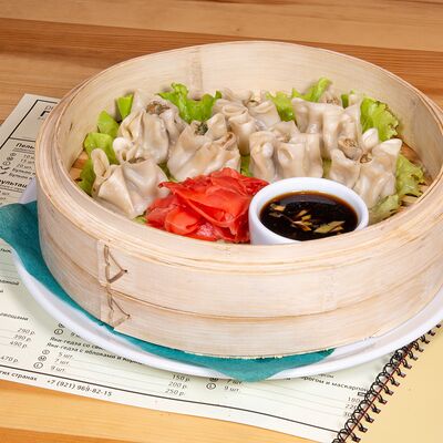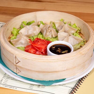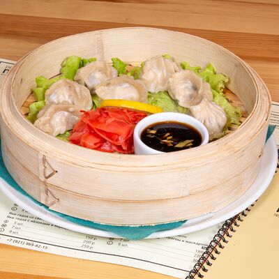 Фарш из креветок, водяной каштан, соевый соус (7 шт.). Подаются с острым соевым соусом и маринованным имбирем