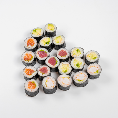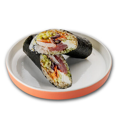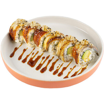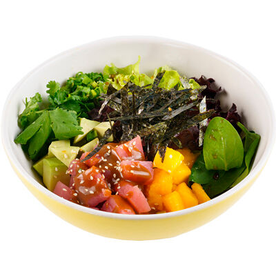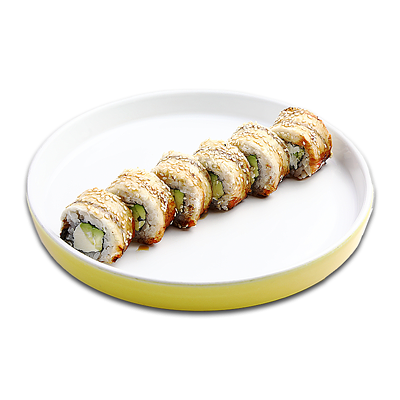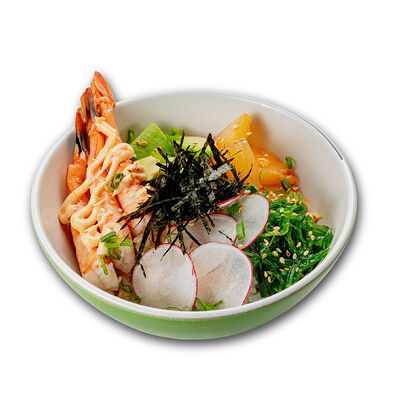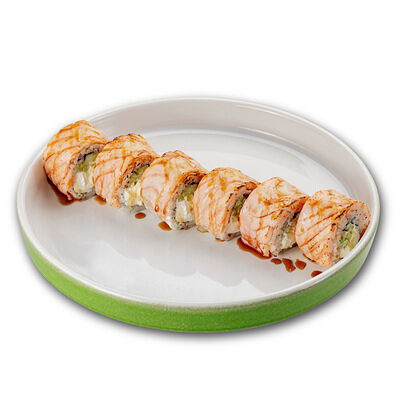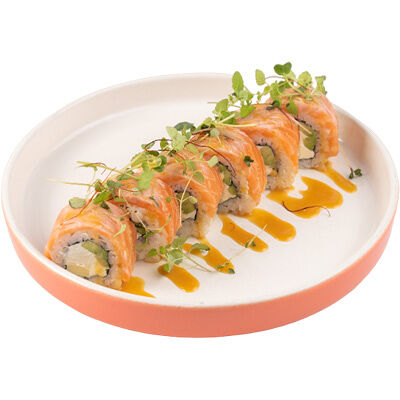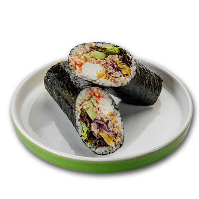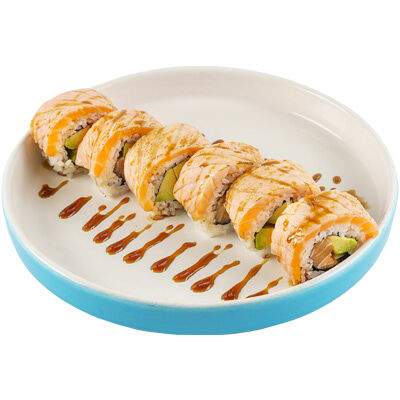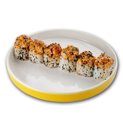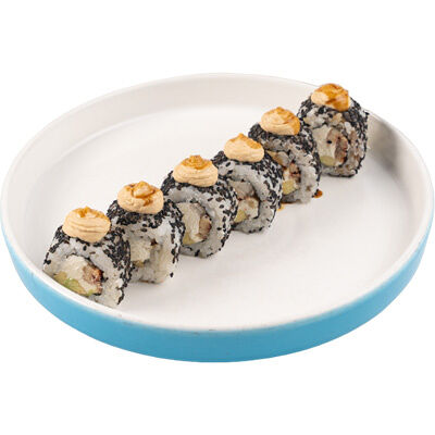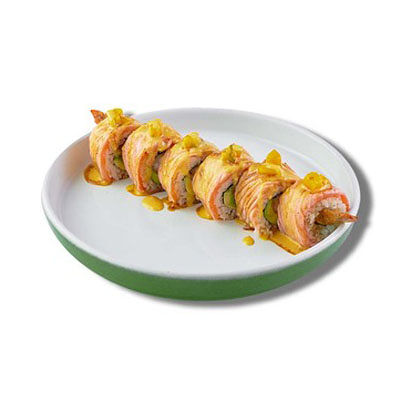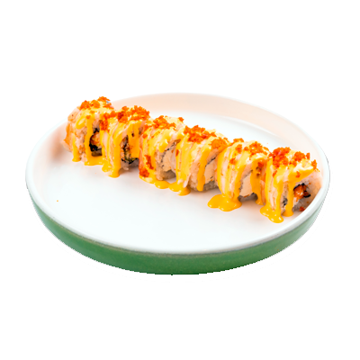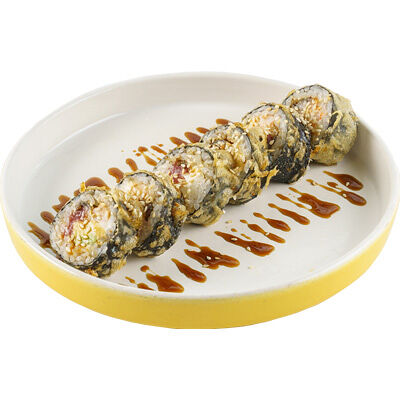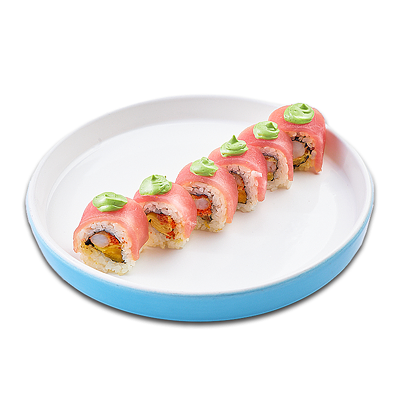 Ароматные креветки темпура, белый рис, водоросли нори, манго, такуан, соус спайси тобико, свежий тунец и авокадо майо. Кбжу: 499.3/21.9/13.5/72.5