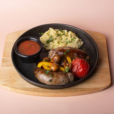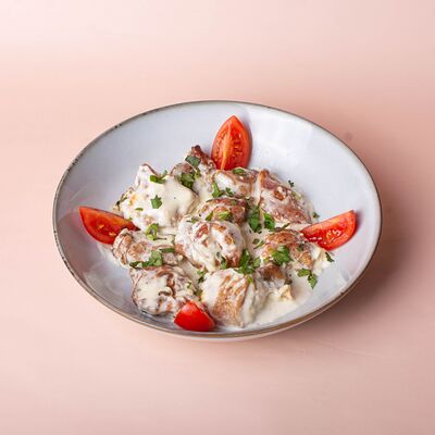 Свинина, лаваш, соус сацебели, лук, помидоры, фриллис