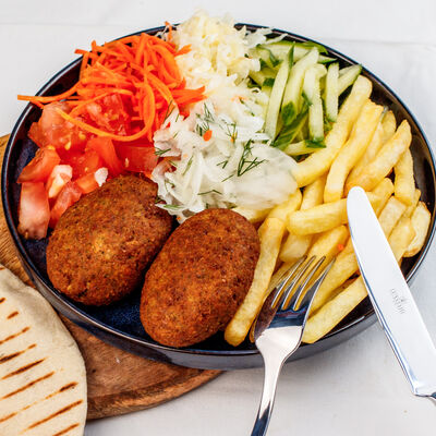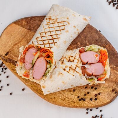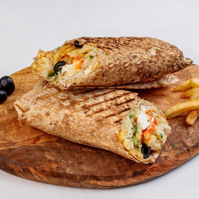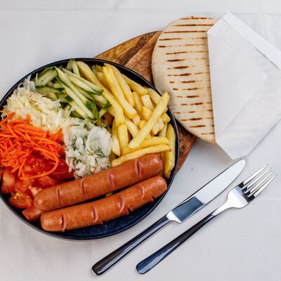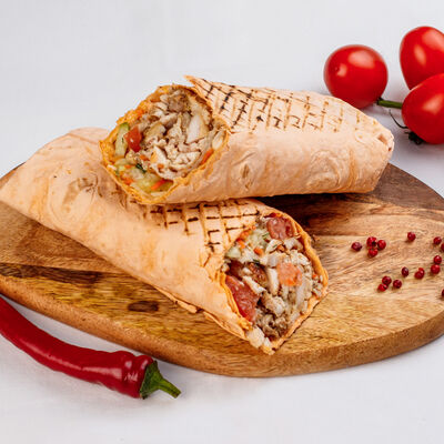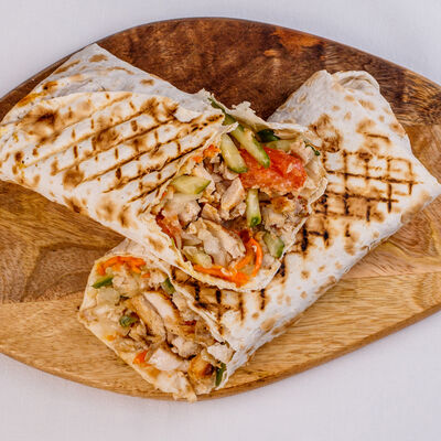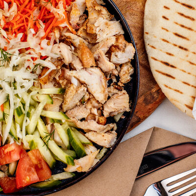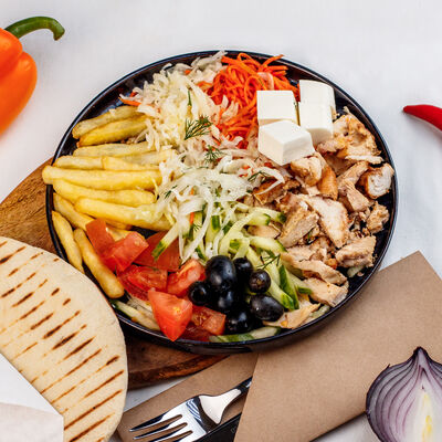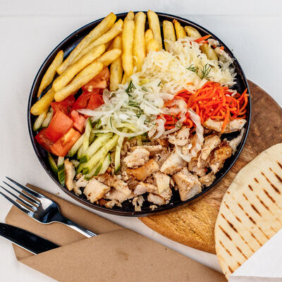 Курица, капуста, помидор, огурец, морковь, соус, лук
