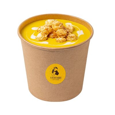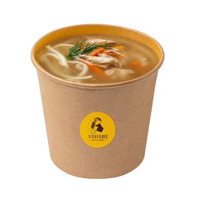 Бульон куриный, курица копченая, петрушка, картофель, морковь, лук репчатый, куркума, базилик, томатная паста, паприка