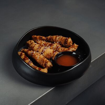 Апельсин, апельсиновый сок, кинза, чеснок, соевый соус, рыбный соус, растительное масло