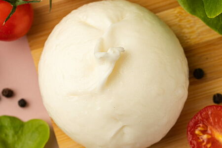 Буррата представляет собой мешочек из моцареллы, наполненный мягким сливочно кремовой начинкой, сделанной из кусочков моцареллы и сливок. Хорошо сочетается с помидорами и зеленью (с базиликом, рукколой и т.д.).