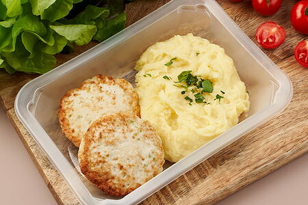 Куриные оладьи с картофельным пюре доставка