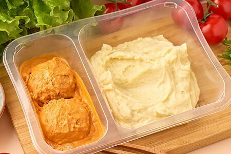 Куриные тефтели с картофельным пюре и сливочно-томатным соусом доставка