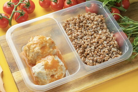 Тефтели в томатном соусе с гарниром из гречи доставка