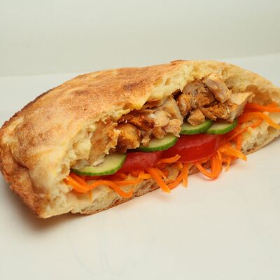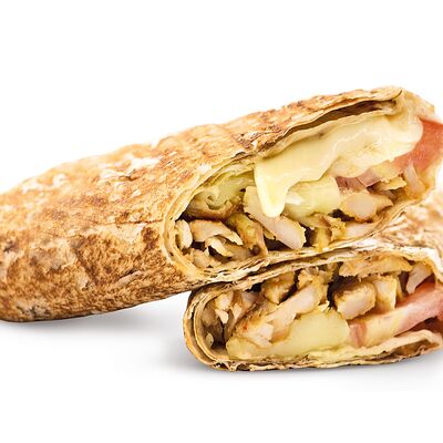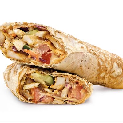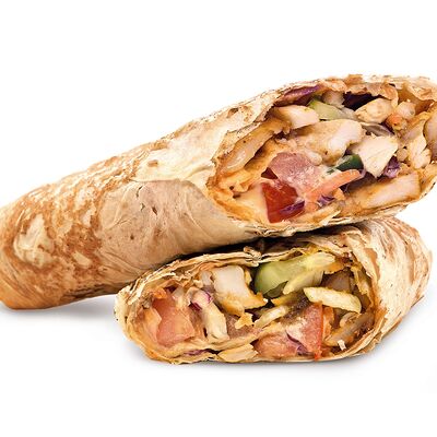 Тонкий лаваш, курица, обжаренные грибы, морковь по-корейски, соус урбан