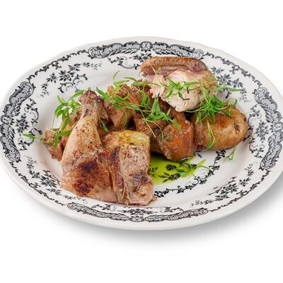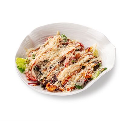 Филе цыпленка, микс салата, томаты черри, перепелиное яйцо, крутоны, пармезан