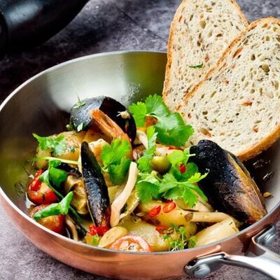 Сковородка с морепродуктами доставка