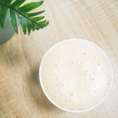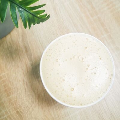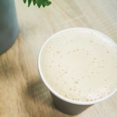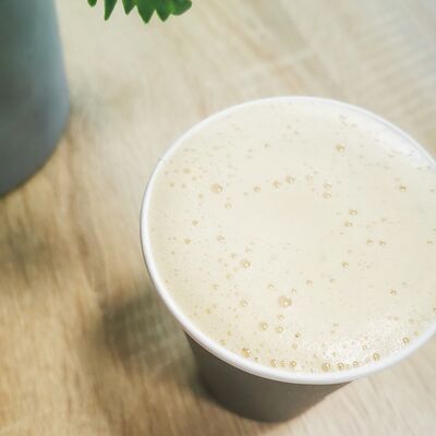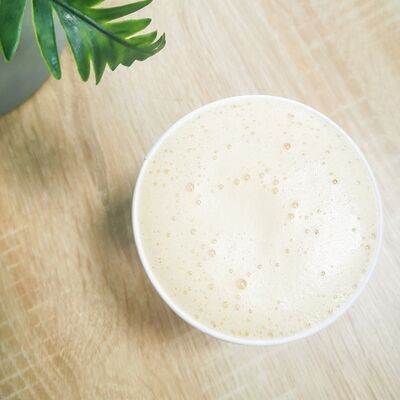 Эспрессо, 10% сливки, сироп фисташка, соль, взбитые вместе в нежный сливочно-фисташковый напиток с легким соленым послевкусием