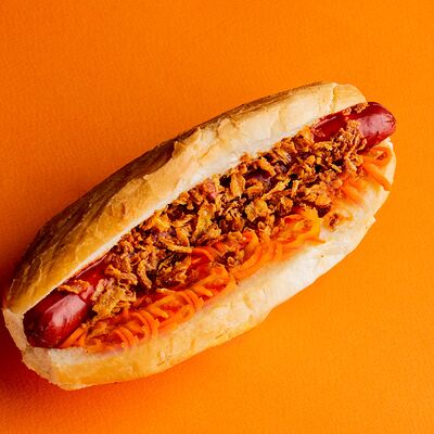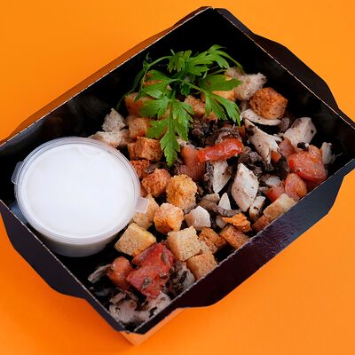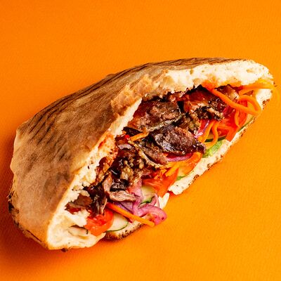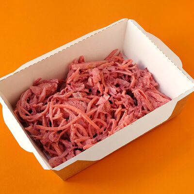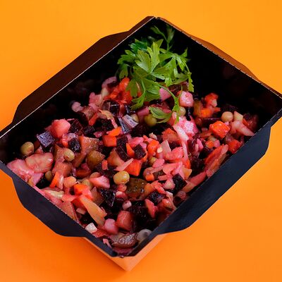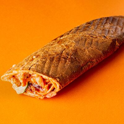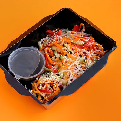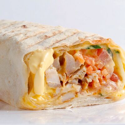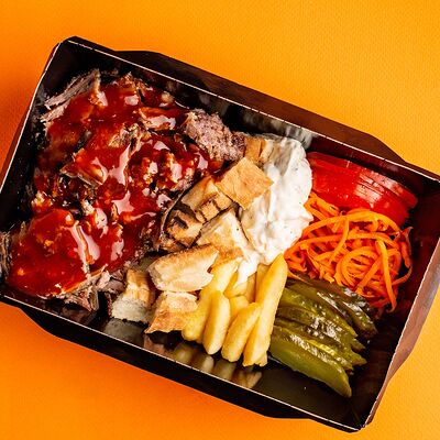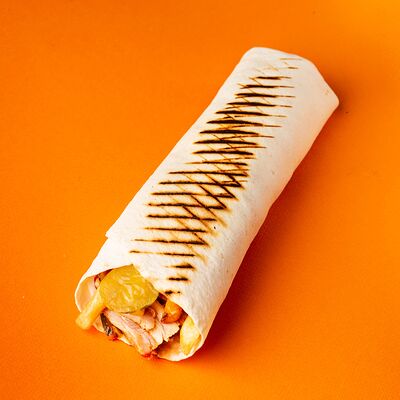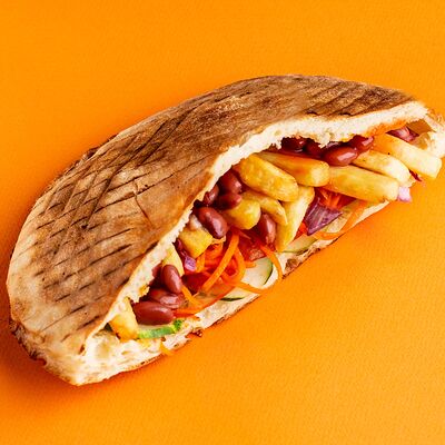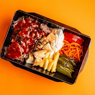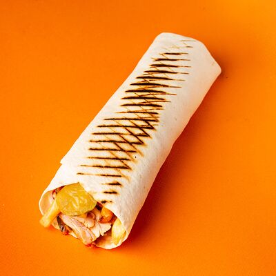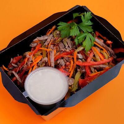 Тонкий лаваш, красная фасоль, картофель фри, свежие огурцы и помидоры, морковь по-корейски, соус скарлет