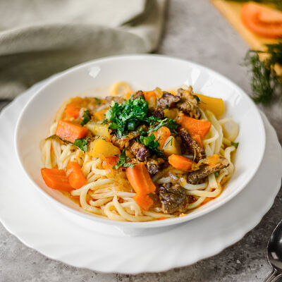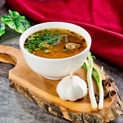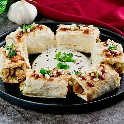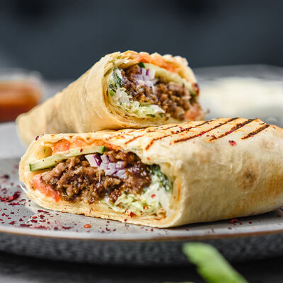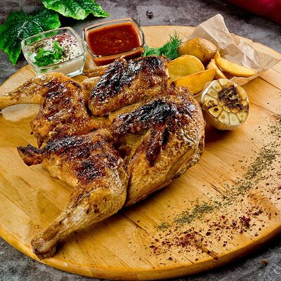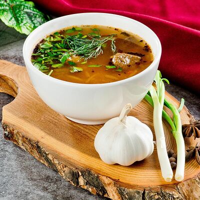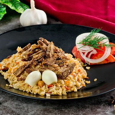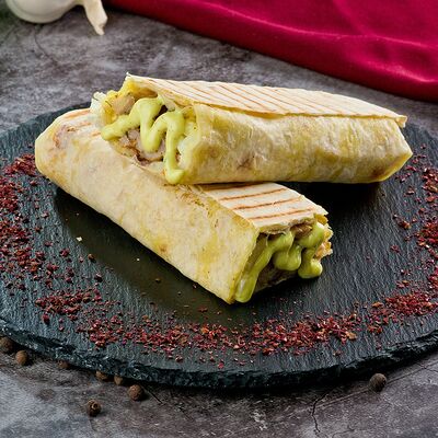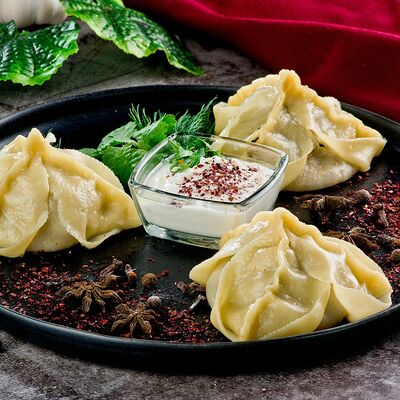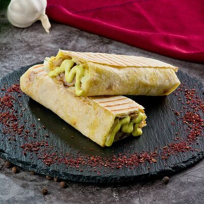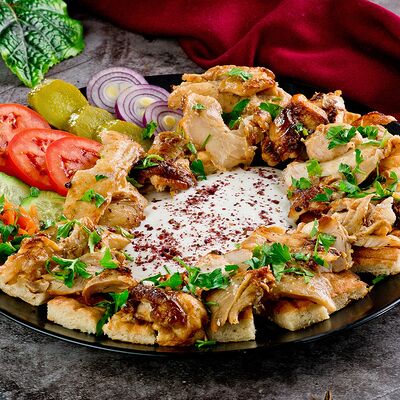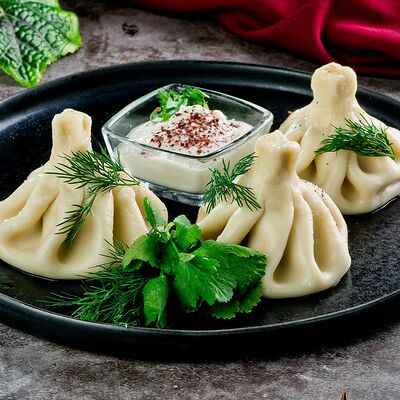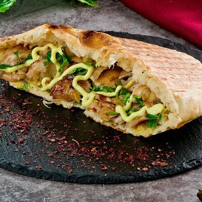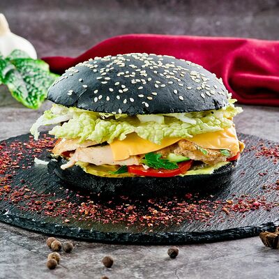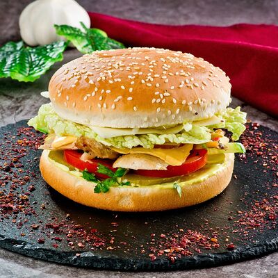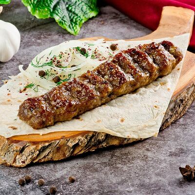 Пышная булочка, соус собственного приготовления на основе Мацони, огурчики, помидорчики, красный лук, пекинская капуста, телятина