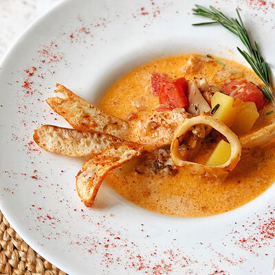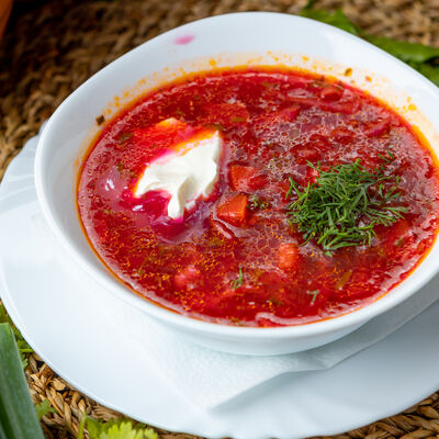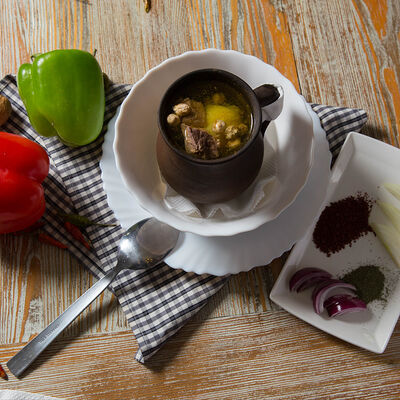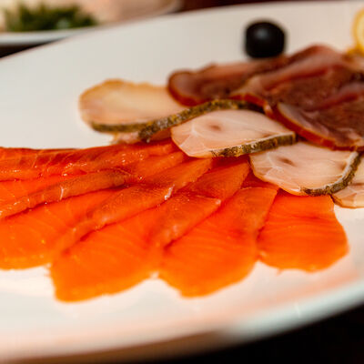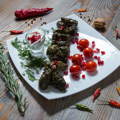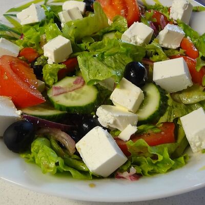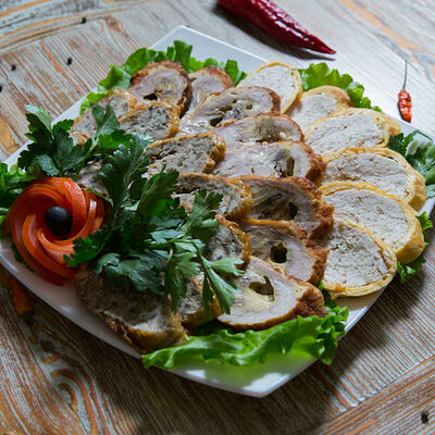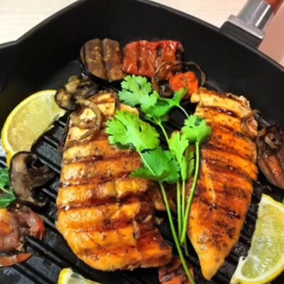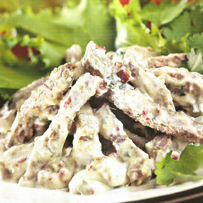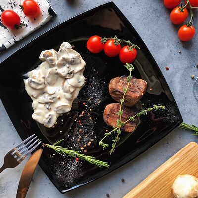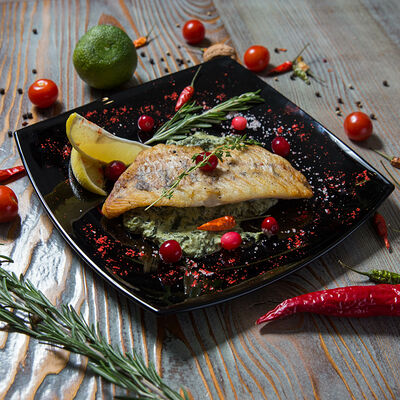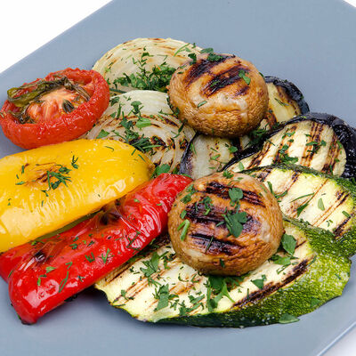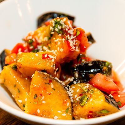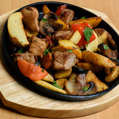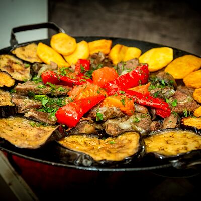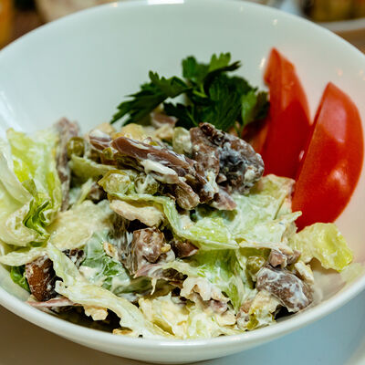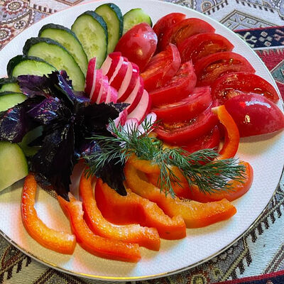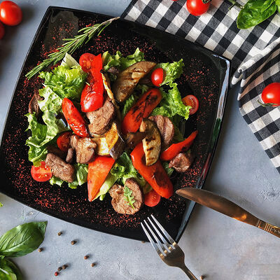 Вырезка говяжья, перец болгарский, цукини, черри салат, соус бальзамический