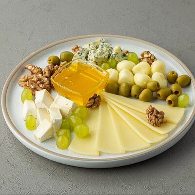 Моцарелла, дорблю, креметте, пармезан, грецкий орех, винoград, соус мутти (30 см)