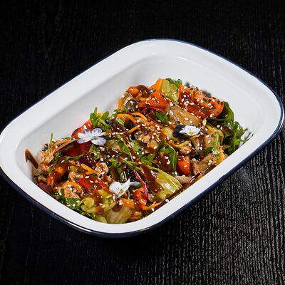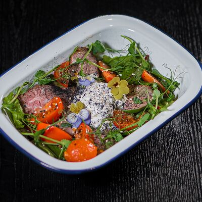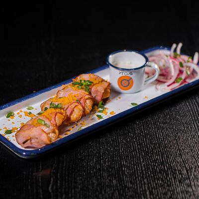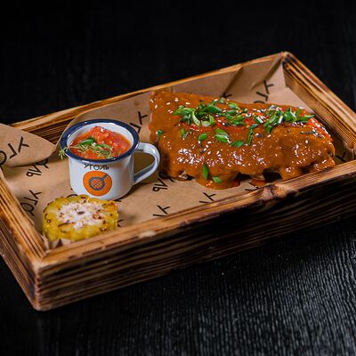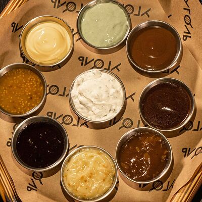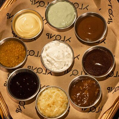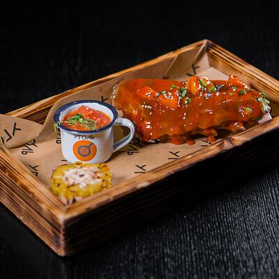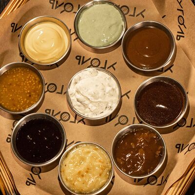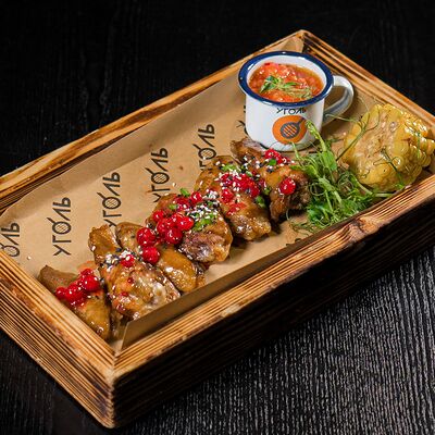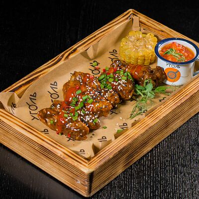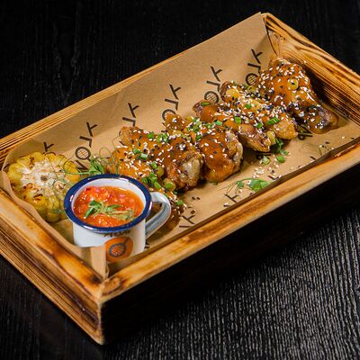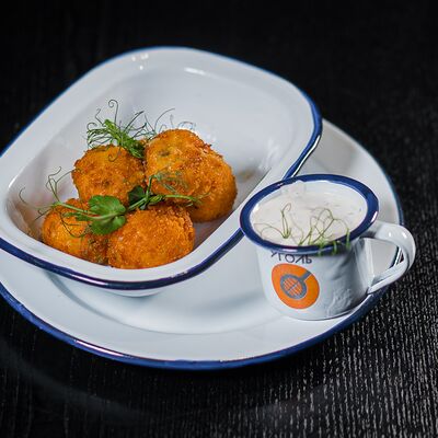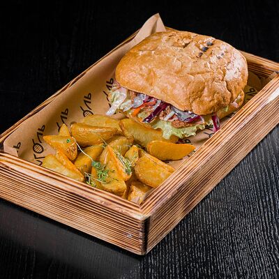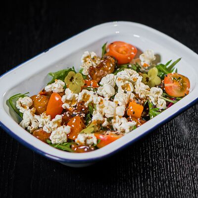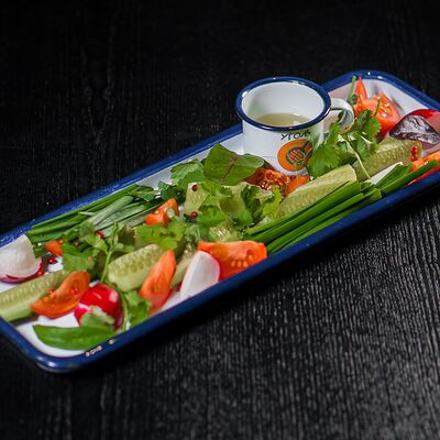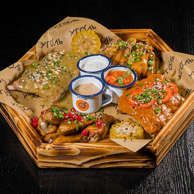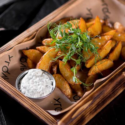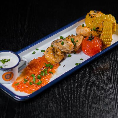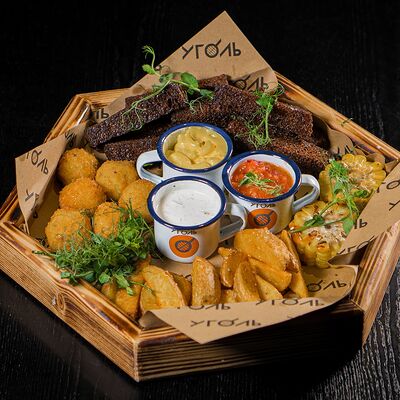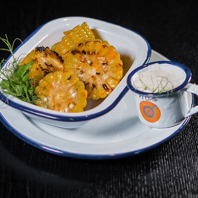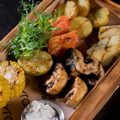 Картофель, кукуруза, шампиньоны, болгарский перец, томаты, соус тар-тар