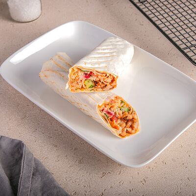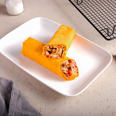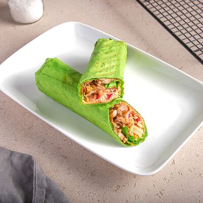Лепешка, свежие томаты, свежие маринованные огурцы, морковь по-корейски, зелень, лук, белый соус, красный соус