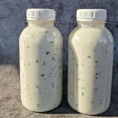 Белый и красный соус, помидор, огурцы, зелень, морковь