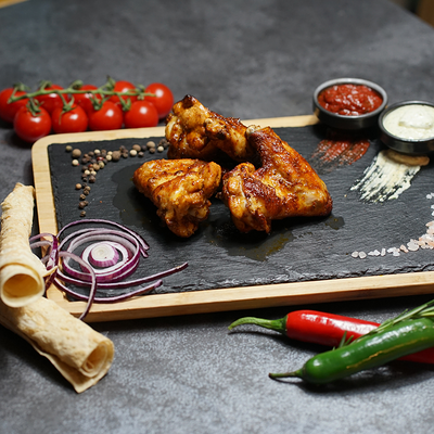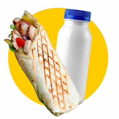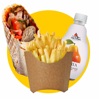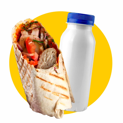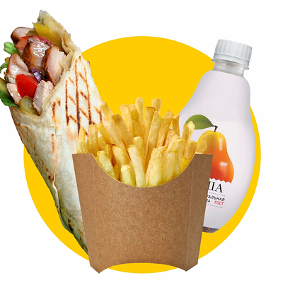 Лаваш, куриный шашлык на мангале, пекинская капуста, помидор, соленый огурец, фирменный соус