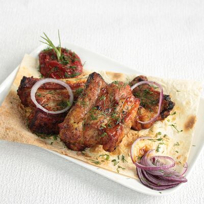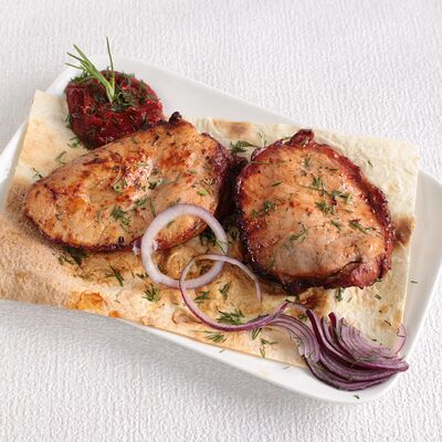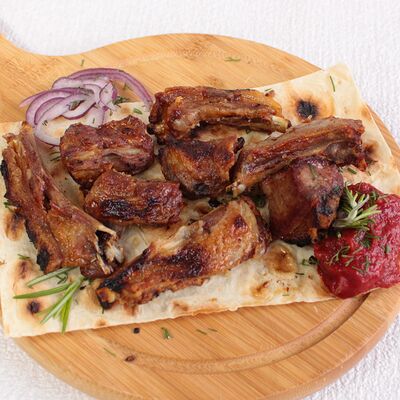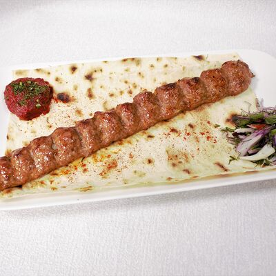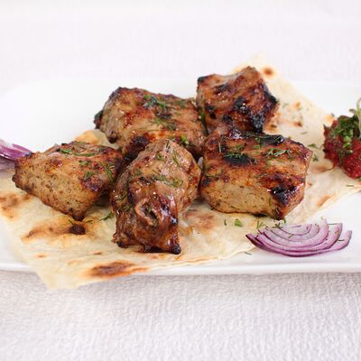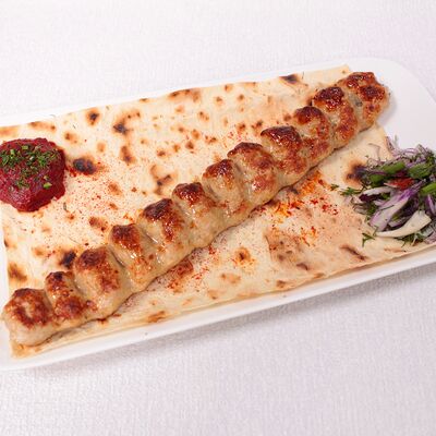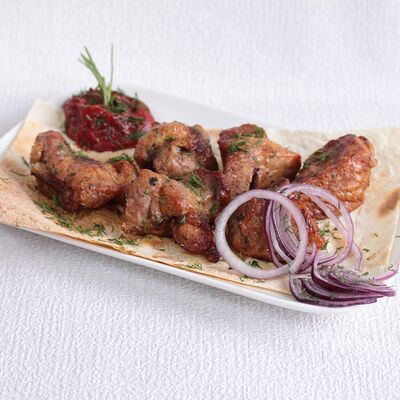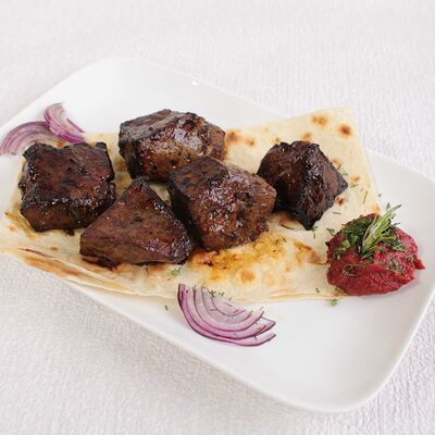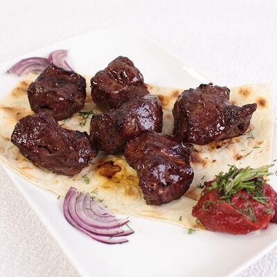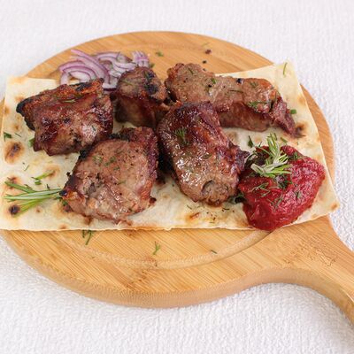 Сочная и нежная мякоть фермерской говядины Eco, ароматные специи, крымский лук, резаная зелень, лаваш. Готовится по фирменному рецепту Шеф-повара, просто тает во рту. Мы используем фермерское мясо, выращенное без гормонов роста. Готовится на мангале
