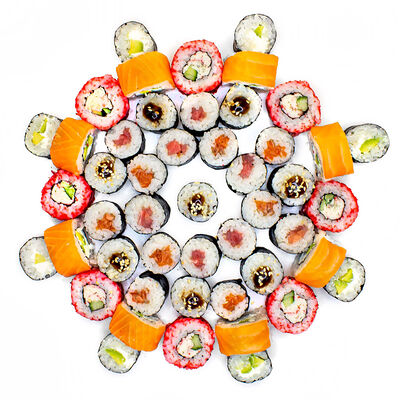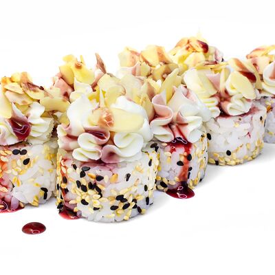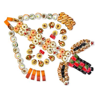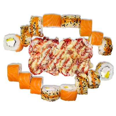 Лосось под спайси (315 г), Краб под сырным (315 г), Панко с угрем (290 г), Панко фирменный (300 г), Панко Четыре сыра (290 г), Мидии под сырным. Имбирь, васаби, соус соевый