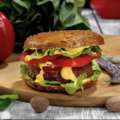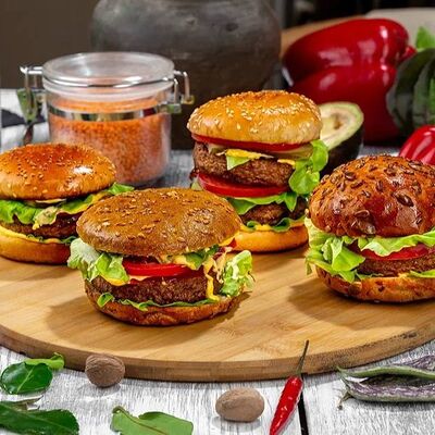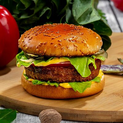Вода, текстурированный растительный белок (соевый, гороховый, рисовый), рафинированные дезодорированные растительные масла (рапсовое, кокосовое, подсолнечное), изолят соевого белка, соль пищевая, ароматизаторы натуральные, растительные волокна, глюкоза, перец черный молотый, чеснок молотый, красители - концентрат сухой свекольный, карамельный колер, антиокислитель - лимонная кислота