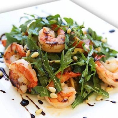 C тигровой креветкой, салатом, сыром пармезан и соусом цезарь