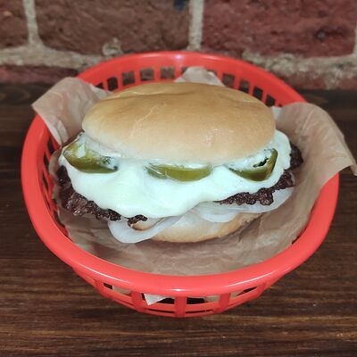 Сочетание сливочного сыра моцарелла с острым перцем халапеньо, котлеты из говядины и сладкого белого лука, и, конечно же, фирменный соус айоли и соус бургерный