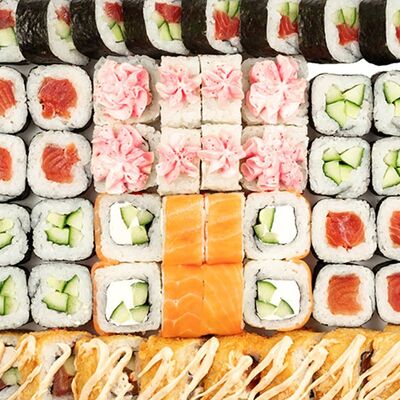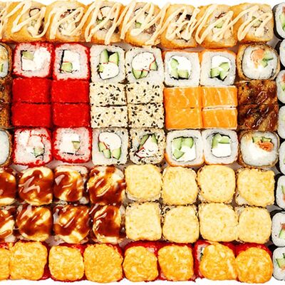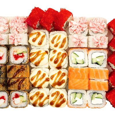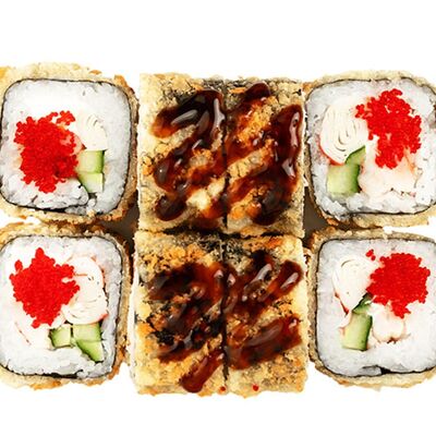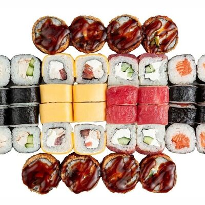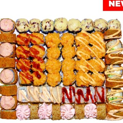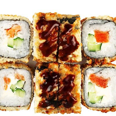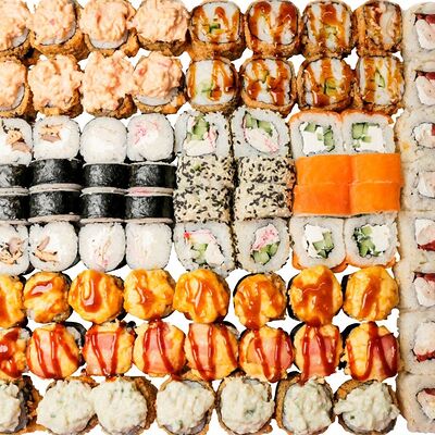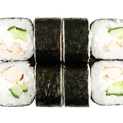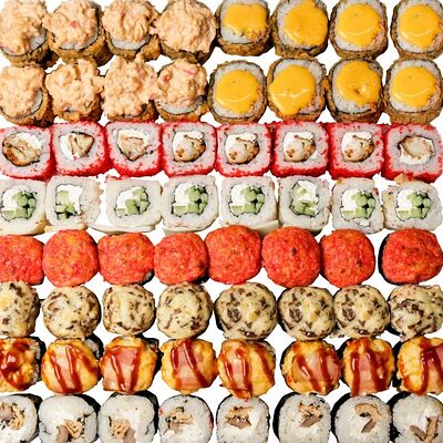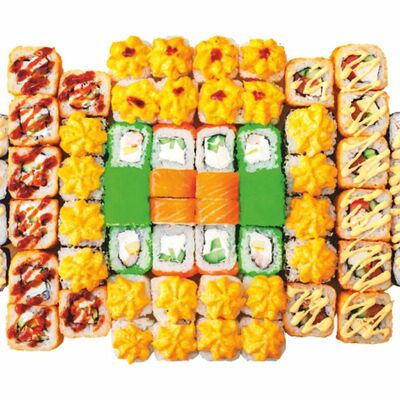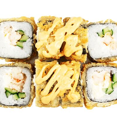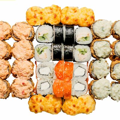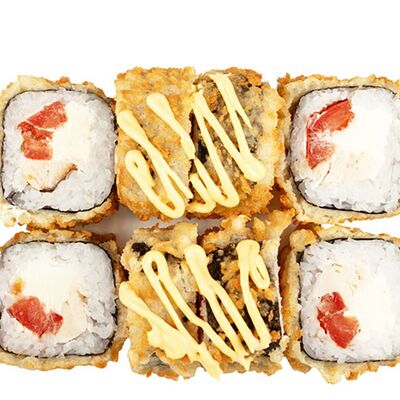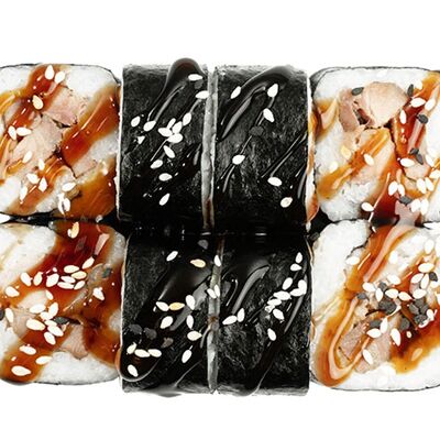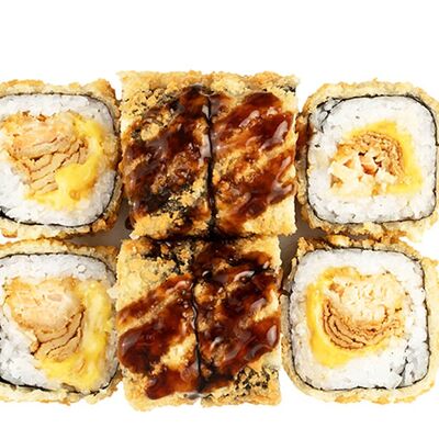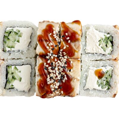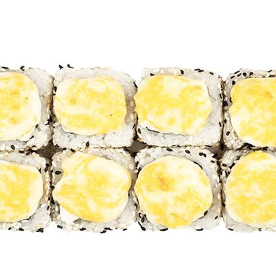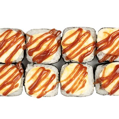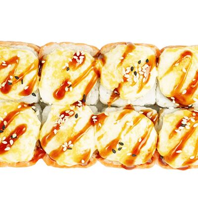 Рис, курица, томат, сыр творожный, перец болгаркий, пикантный сырный соус, кунжут
