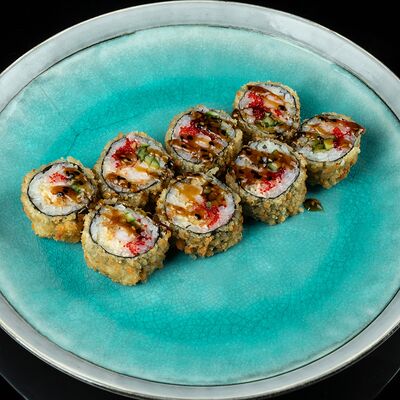 Бульон том ям, тигровые креветки, мидии, помидоры черри, грибы цао гу, кинза, рис