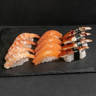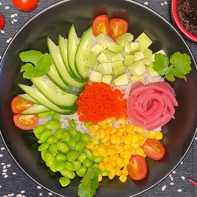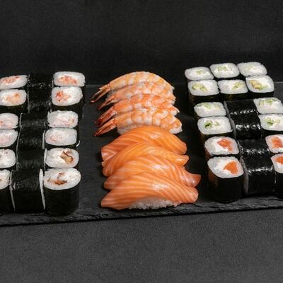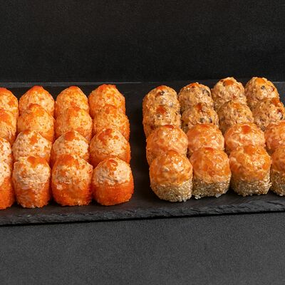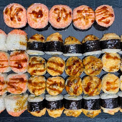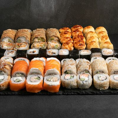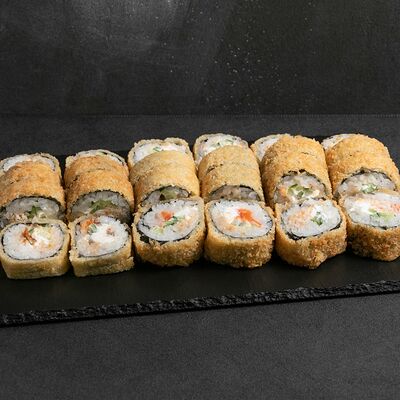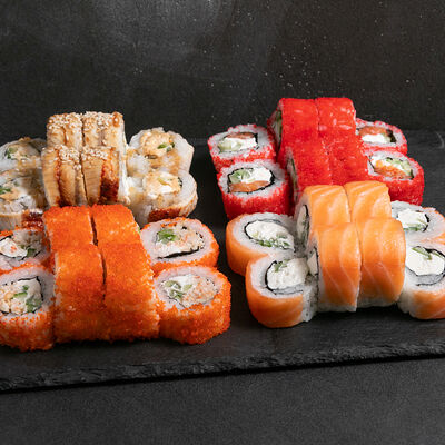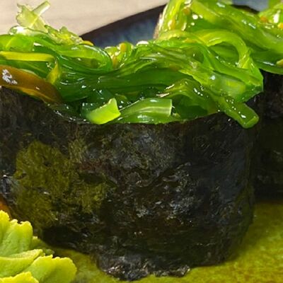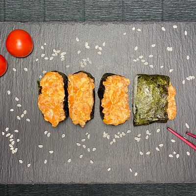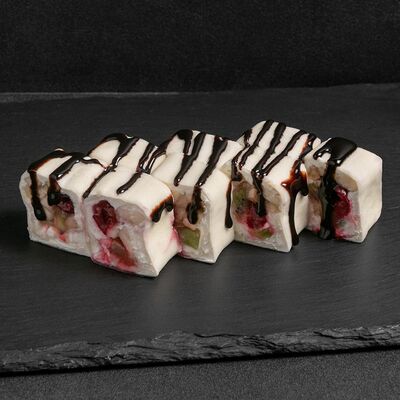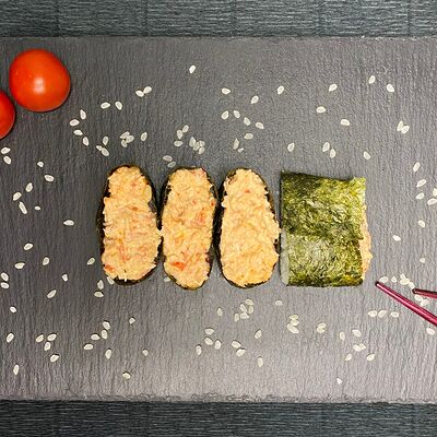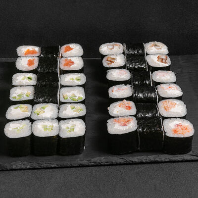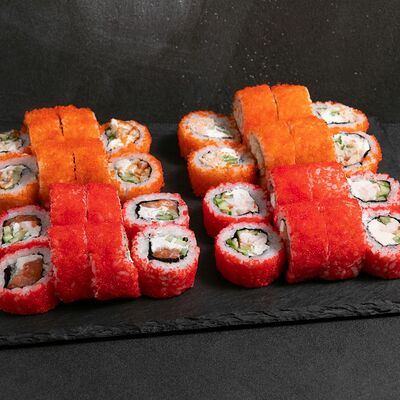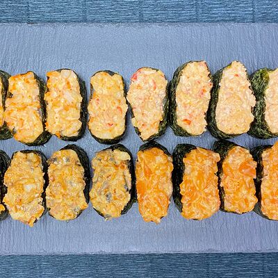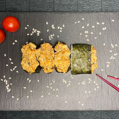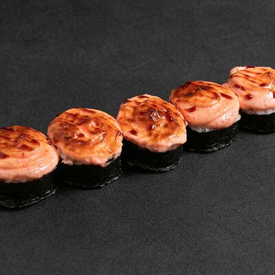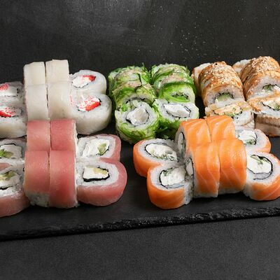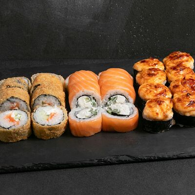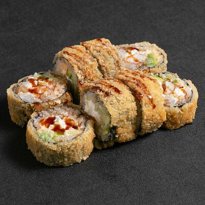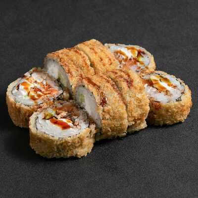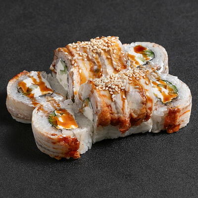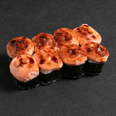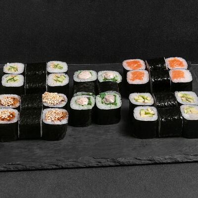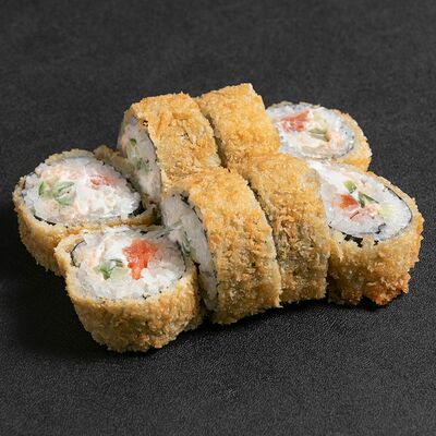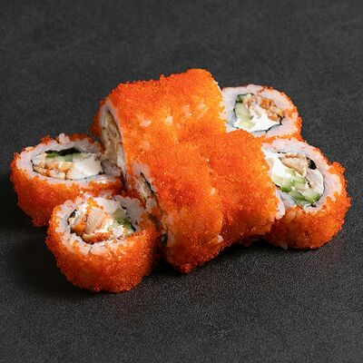 Огурец, лосось, сыр сливочный, имбирь, васаби, соевый соус, рис, нори. Кбжу: 141/6/8/13 (8 шт.)