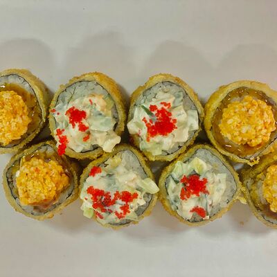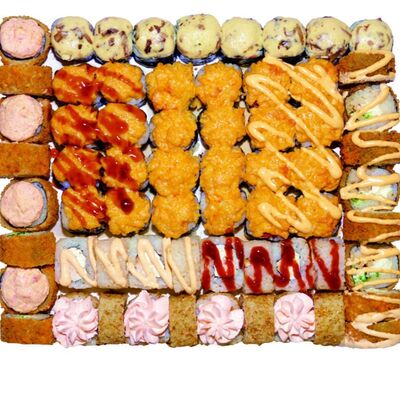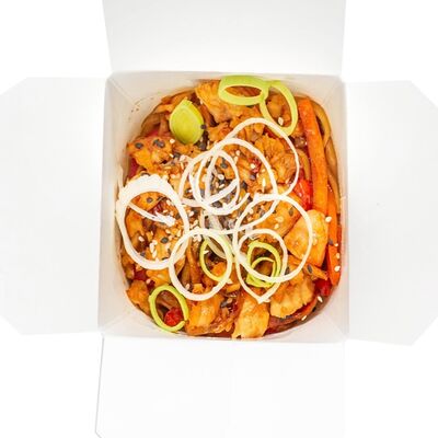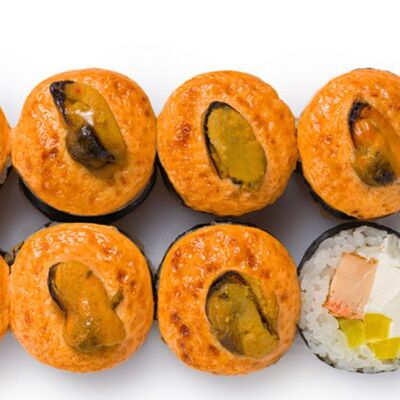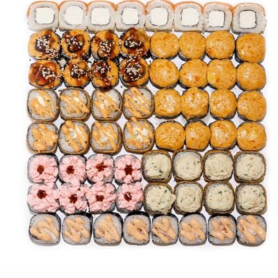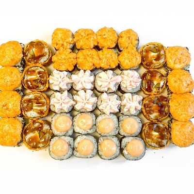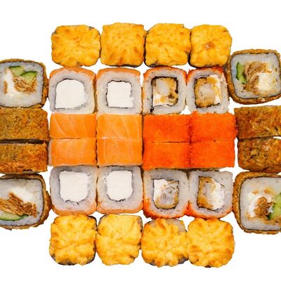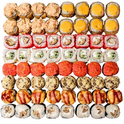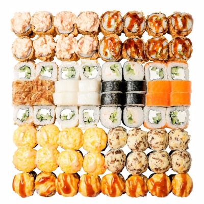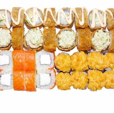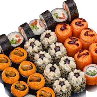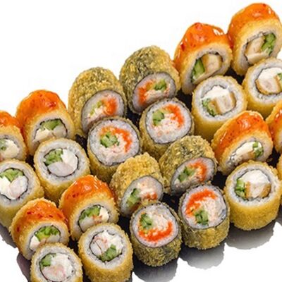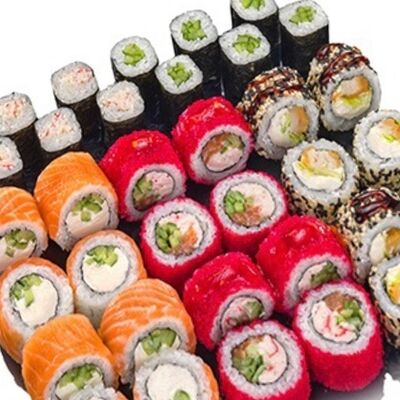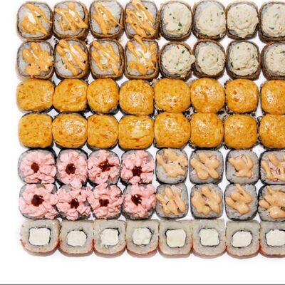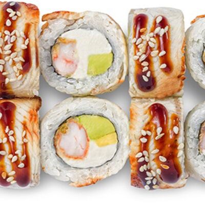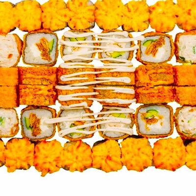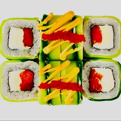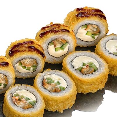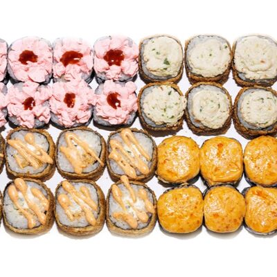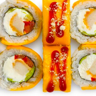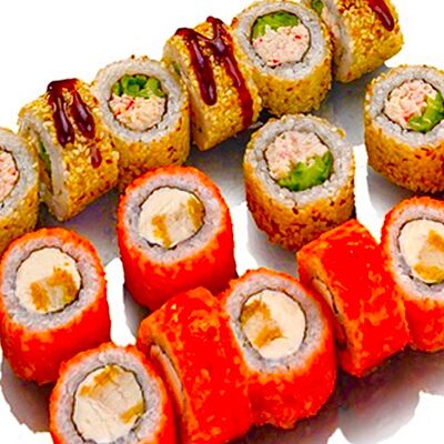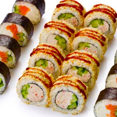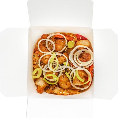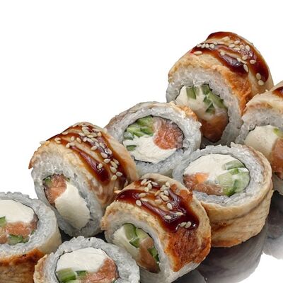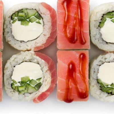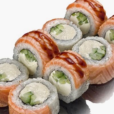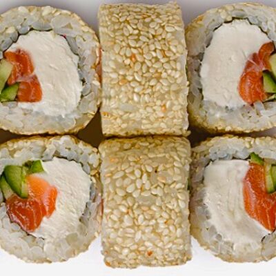 Рис, лосось, перец, морковь, кунжут, лук-порей, соус унаги