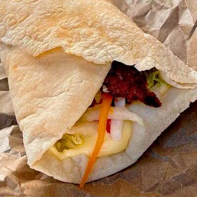 Люля из баранины, рубленые томаты, зелень, красный лук с соусом BBQ, завернутые в горячий тандырный лаваш