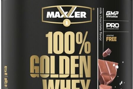 Maxler 100% Golden whey. 100% ультрафильтрованный сывороточный протеин высокая концентрация BCAA рост мышечной массы, быстрая потеря жира и моментальное восстановление легко усваивающийся белок для тонуса мышц 100% Golden Whey - это чистый сывороточный белок премиум класса, который идеально подходит для интенсивных тренировок! Продукт содержит 100% чистые концентрат, изолят и гидролизат сывороточного протеина высокого качества, обеспечивающий быстрое всасывание и усваивание белка. Незаменим в период интенсивных тренировок, когда необходимо увеличить потребление белка для поддержки положительного баланса азота и насыщения мышц необходимыми для роста и восстановления аминокислотами. 100% Golden Whey - это легко усваиваемый продукт, насыщенный незаменимыми аминокислотами (BCAA) для быстрого восстановления мышечной ткани после тренировок. Состав в одной порции (33 гр) Калории 130 ккал Белки 24 г Углеводы 5 г Сахар 0 г Жиры 2 г Насыщенные жиры 1 г Витамин А 50 мкг Витамин С 0 мг Натрий 100 мг Кальций 122 мг Калий 270 мг Железо 1 мг Аминокислоты Л-триптофан 405 мг Л-валин 1422 мг Л-треонин 1654 мг Л-изолейцин 1573 мг Л-лейцин 2531 мг Л-лизин 2233 мг Л-фенилаланин 748 мг Л-метионин 492 мг Л-аргинин 570 мг Л-цистеин 470 мг Л-тирозин 703 мг Л-гистидин 423 мг Л-пролин 1509 мг Л-глютаминовая кислота 3880 мг Л-аспарагиновая кислота 2400 мг Л-серин 1126 мг Л-глицин 440 мг Л-аланин 1160 мг Ингредиенты: Протеиновая смесь (изолят сывороточного протеина, концентрат сывороточного протеина, сывороточные пептиды), искусственные ароматизаторы, лецитин, ацесульфам калия.