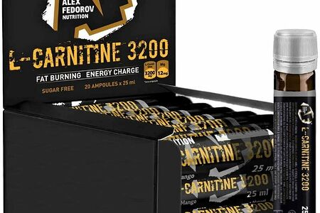 Карнитин L-Carnitine 3200 от Alex Fedorov Nutrition значительно усилит эффект от ваших тренировок! Препарат нормализует липидный обмен, способствуя трансформации подкожного жира в энергию. Он повышает выносливость и способствует более интенсивным и продолжительным тренировкам, при этом препятствуя мышечному распаду. Как жиросжигатель карнитин известен уже давно. Кроме того, L-карнитин улучшает сердечный метаболизм и снижает уровень холестерина в крови. лактат магния, который входит в состав препарата, поддерживает работу сердца при нагрузках, не содержит сахара. Рекомендации по применению Рекомендуется принимать 1/2 ампулы за 20-30 минут до тренировки. Порция 12,5 мл Состав в: 12,5 мл 1 амп Углеводы <0,1 г <0,2 г L-карнитин (тартрат) 1600 мг 3200 мг Магний лактат 50 мг 100 м