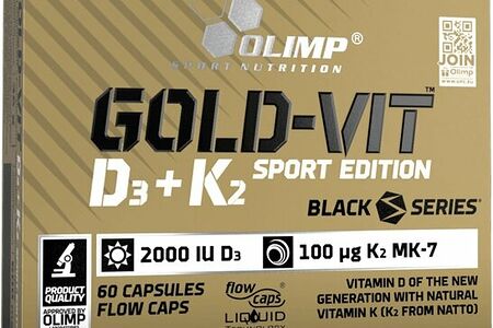 Gold-Vit D3+K2 – уникальная биоактивная добавка, произведенная по технологии Flow Caps Liquid Technology®. Каждая капсула содержит холекальциферол (витамин D3) и натуральный витамин К2, полученный из натто (ферментированной сои). Благодаря методу Flow Caps ценные ингредиенты сохраняют качества и быстро абсорбируются. Главный компонент продукта – витамин К в виде менахинона-7 (МК-7). Это улучшенная форма витамина К2, наиболее полно усваиваемая организмом. Витамин К отвечает за нормальную свертываемость крови и поддерживает прочность костей. Дополнительные функции вещества – нормализация функций сердечно-сосудистой системы, защита от остеопороза, забота о здоровье зубов, замедление старения кожи. В альянсе с витамином D3 МК-7 защищает костную систему, помогает избежать проблем с минерализацией костей, помогает добиться безопасности во время физических упражнений. Биоактивная добавка рекомендована для ежедневного приема всем активным людям, а также тем, кто редко бывает на солнце либо пользуется солнцезащитными средствами. Содержание питательных веществ: 1 капсула % NRV * Витамин D (D3) 50 мкг (2000 мкм) 1000% Витамин K (K2) 100 мкг130 % Состав: подсолнечное масло, оболочка капсулы (желатин) менахинон -7 (полученный путем ферментации соевых бобов), холекальциферол, токоферол антиоксидантный экстракт. 1 капсула в день после еды или по указанию врача.