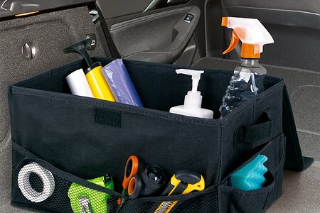 Органайзер автомобильный в багажник, Top Race, обеспечит лёгкий доступ к необходимым вещам. Подойдёт для хранения инструментов, средств для ухода за автомобилем и многого другого. Имеет основное отделение, большой сетчатый карман спереди и 2 кармана для мелочей сбоку. Оснащён удобными ручками для переноски и крышкой на липучке. Размер: 38х22,5х20 см. Состав: картон, полиэстер.