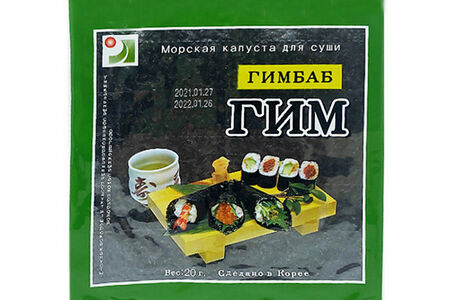 Отличие водорослей нори гим от других листовых водорослей это то, что гим это нежареные водоросли, а высушенные. Сушеные, тонкие, как листы бумаги, листья небольшой оранжево-коричневой, похожей на пленку, морской водоросли асакуса-нори, относящейся к семейству красных водорослей. Длина листа этой водоросли достигает 25 см, ширина - около 5 см. Нори в основном используют для приготовления рулетного суши, онигири (рисовые шарики) и моти (рисовые пирожные). Кроме того, толченой или шинкованной нори украшают смешанное суши или блюда из лапши соба.