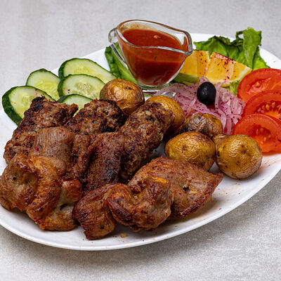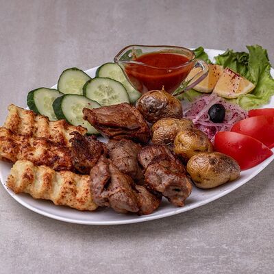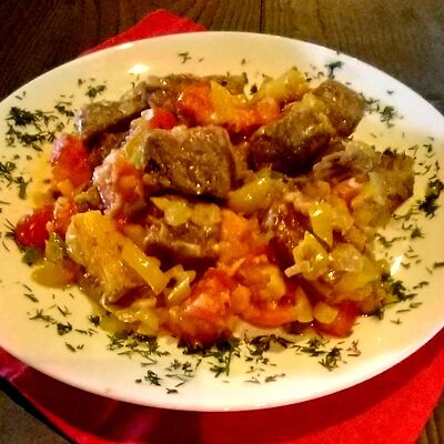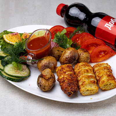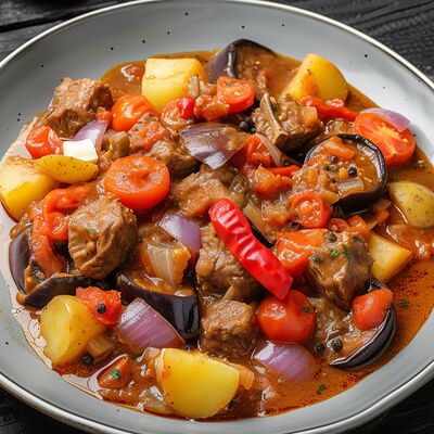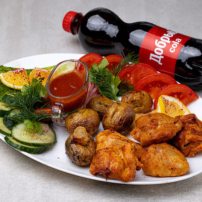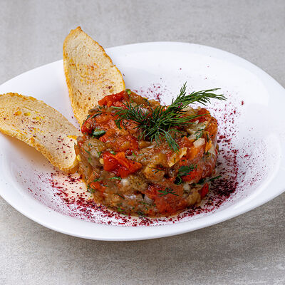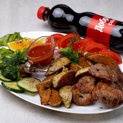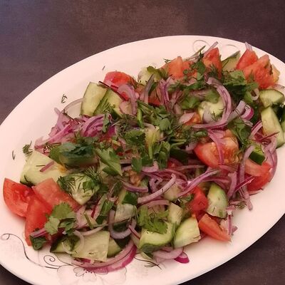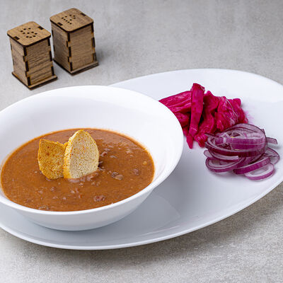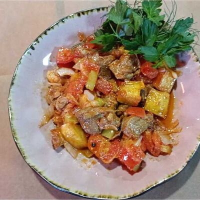 Томат-паста, вода, лук репчатый, чеснок, зелень кинзы, зелень базилика, перец молотый, соль