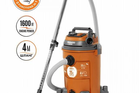Строительный пылесос DAEWOO DAVC 2516S - это надежный помощник во время строительных работ. Он предназначен для очистки помещений от строительного и бытового мусора, а также для сбора жидкости.Корпус пылесоса изготовлен из ударопрочного пластика с ребрами жесткости, что обеспечивает его устойчивость к механическим воздействиям и коррозии. Шланг длиной 4 метра и телескопическая стальная штанга позволяют собирать мусор даже в труднодоступных местах.Пылесос оснащен двойной системой фильтрации, которая включает фильтр предварительной очистки и второй фильтр HEPA. Это позволяет собирать самые мелкие частицы пыли. Встроенная розетка позволяет подключать электроинструмент мощностью до 2 кВт.Уникальная насадка для прочистки засоров позволяет быстро удалить засоры в сливах раковин, ванн и душевых кабин. Наличие сливного отверстия позволяет удалять жидкость, не переворачивая наполненный пылесос.DAEWOO DAVC 2516S работает в трех режимах: всасывание сухого строительного и бытового мусора, обдув с высоким потоком воздуха и сбор жидкости. Это делает его многофункциональным и удобным в использовании.Вес пылесоса составляет всего 4,7 кг, что позволяет легко перемещать его по рабочей зоне. Уровень шума при работе составляет всего 85 дБ, что делает его практически бесшумным.В комплекте с пылесосом идут шланг и мешок для сбора мусора. Объем бака/пылесборника составляет 25 литров, что обеспечивает длительную работу без необходимости частого опустошения.
