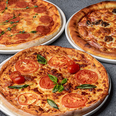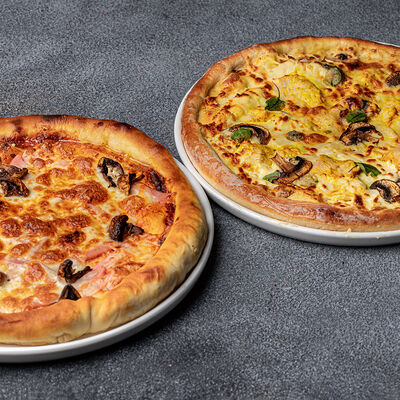 Пицца Четыре сыра (30 см), пицца с Ветчиной и Грибами (30 см)