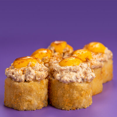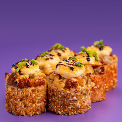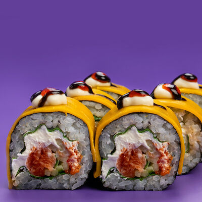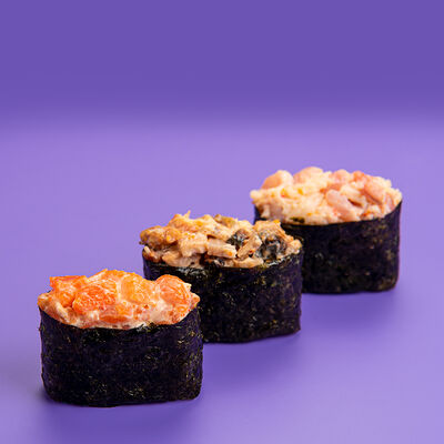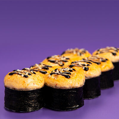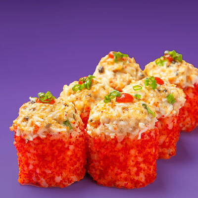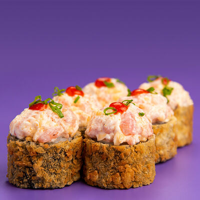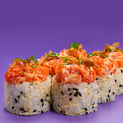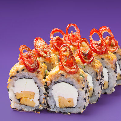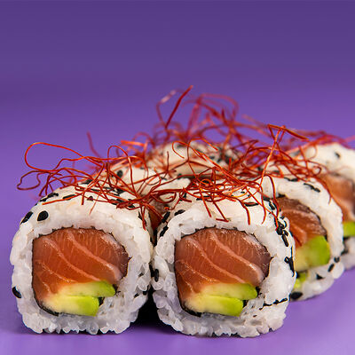 Рис, Водоросли нори, Лосось, Авокадо, Соус чили-унаги, Соус спайси, Черный кунжут, Нити чили