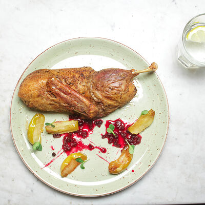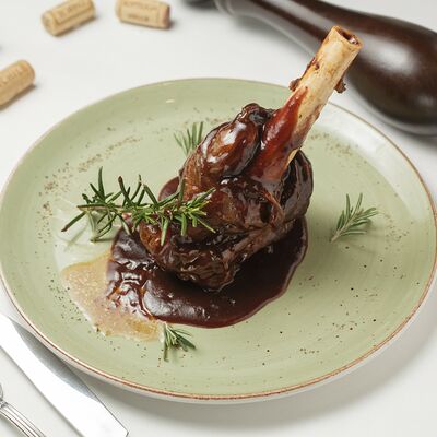 Томленая ножка ягненка в фирменном соусе строганов доставка