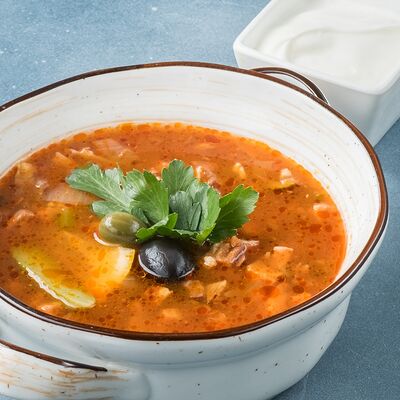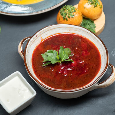 Борщ Украинский с чесночными пампушками и сметаной доставка