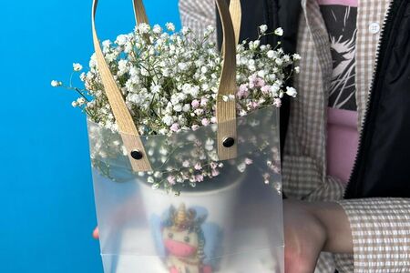 Гипсофила - 2 шт. Оазис - 1 шт. Сумочка - 1 шт. Стакан - 1 шт.