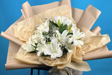 Незабываемый Букет с Белыми Лилиями и Гипсофилой доставка
